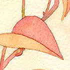 ライムポトス製作 : 2005年 01月 03日 ライムポトスは僕にとってごく身近なモチーフです。うちにも実家にも幾鉢かあります。この作品では光と影のコントラストで面を決めるのではなく、葉のもつ面を画面上でも面として描いています。光や影を感じさせるよりは平面性を強調している描き方かもしれません。 葉の出方は蔓に沿って右、左と交互になっており葉はすべて上方へと向かって伸びます。 |